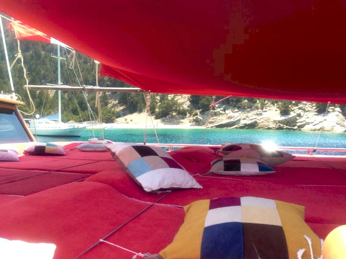 1. Gün - Fethiye, Kızıl Ada: Tekneye yarış sonrasında liman kayıt işlemlerinin ardından mavi yolculuk ve tekne hakkında bilgilendirme yapılır. Misafirlerimizin tekneye geliş zamanlarına göre geceleme Fethiye Limanı'nda ya da Kızıl Ada'da gerçekleşir. Akşam yemeği ve meyve ikramı geceleme yapacağımız limanda verilir.